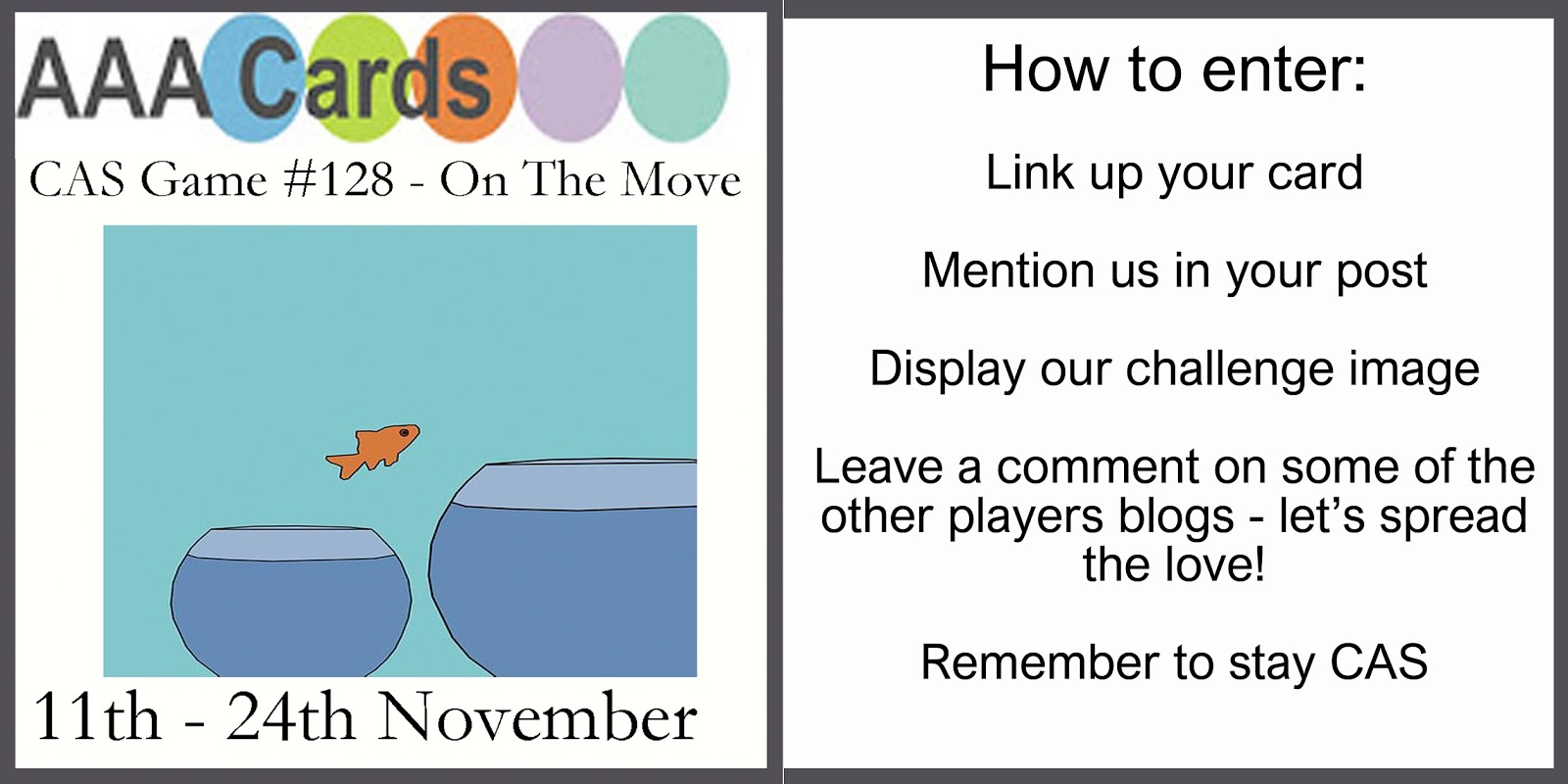 Hey! Welcome to the new challenge here at AAA Cards.  We have a super theme for your CAS cards and hope you'll enjoy playing along.