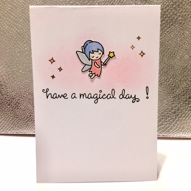 The repeated stamping is such a fantastic way to show movement and we loved the gradual fading of the colours too. The central placement of the image and sentiment leaves it surrounded by beautiful empty white space.
